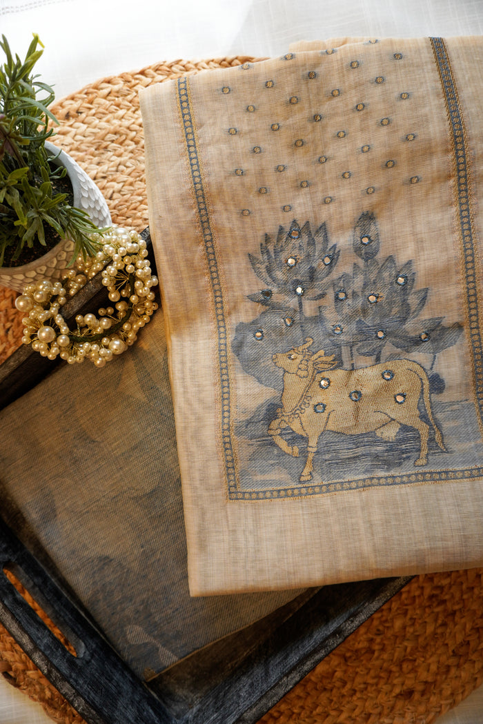 Yellow Gold Chanderi- 3 Piece Suit Set